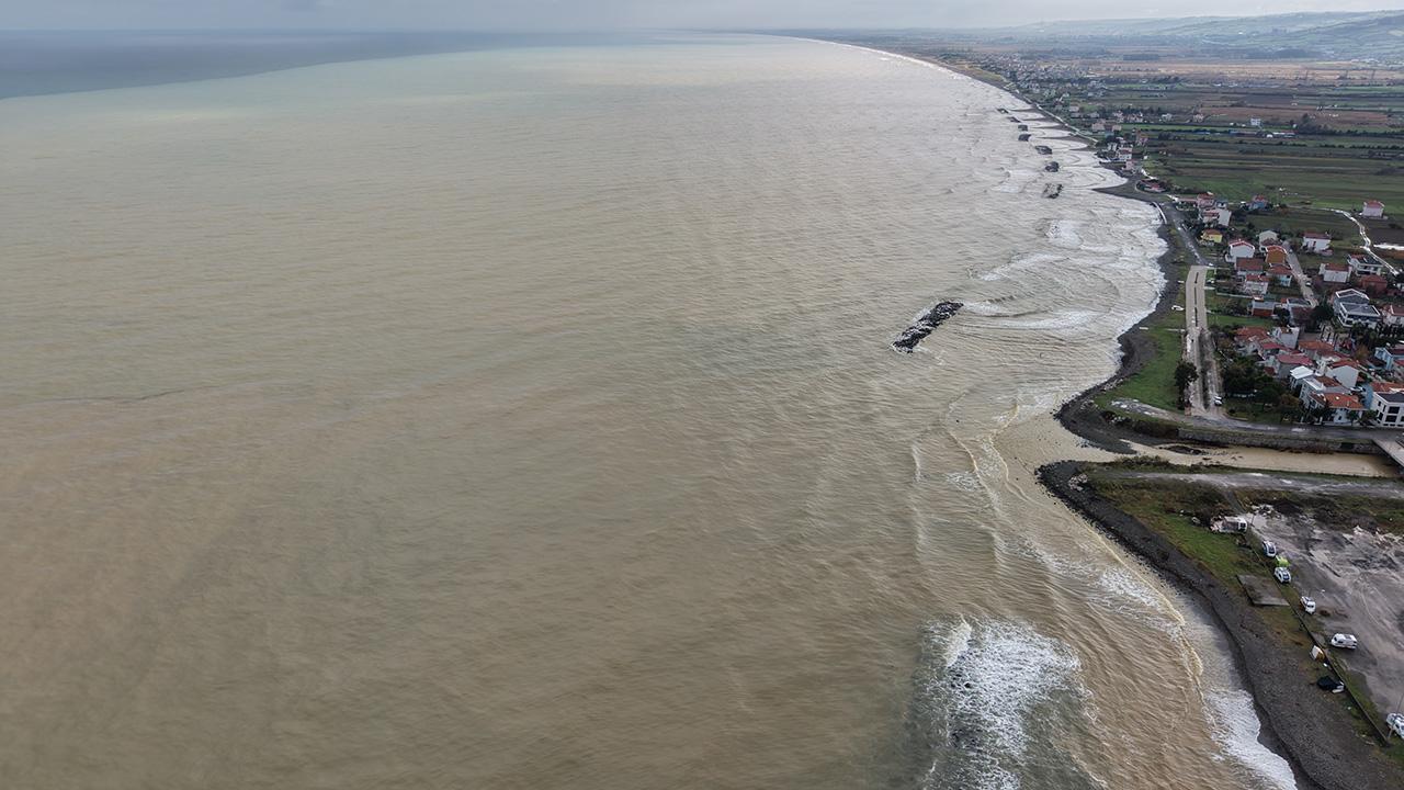 Samsun’da etkili olan yağışın ardından Karadeniz’in rengi kahverengiye dönüştü.