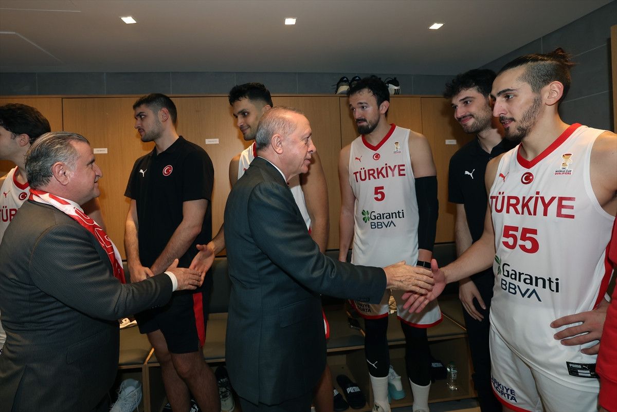 Daha sonra soyunma odasına inerek sporcuları ve teknik heyeti tebrik eden Erdoğan, basketbolcu Ercan Osmani’ye “Hemşehrilerini duman ettiniz ya.” dedi.