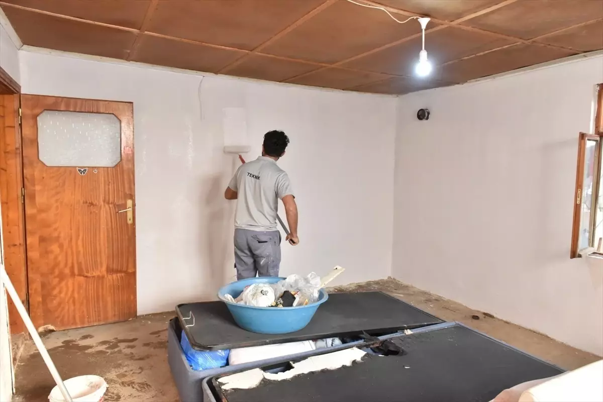 Antalya’nın Kepez ilçesinde yangın nedeniyle hasar gören ev, Kepez Belediyesince onarıldı.